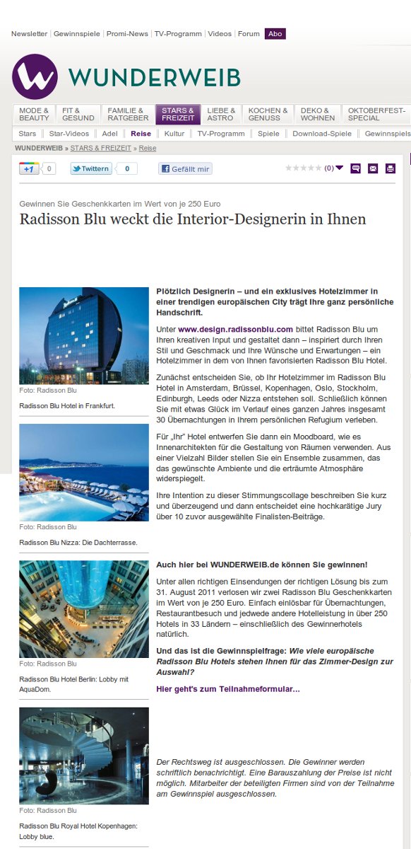 Für die Rezidor Hotelgruppe in Brüssel initiierte jumpr Kooperationen mit Print- und Online-Medien in Deutschland zur Bewerbung einer internationalen Design-Kampagne.